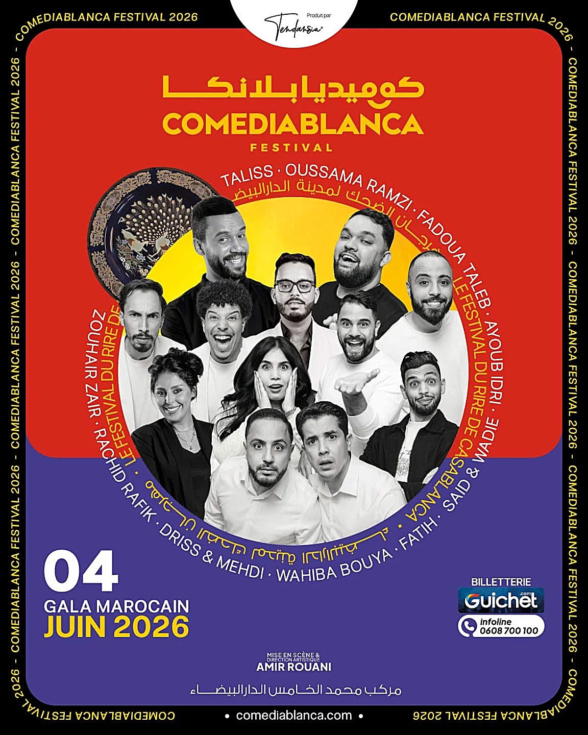 وفي السياق ذاته، أبرز المدير الفني للمهرجان أمير الرواني أن البرمجة الفنية لهذه الدورة تراهن على تقديم تجربة متكاملة، تتجاوز العرض الكوميدي التقليدي نحو خلق لحظات جماعية مؤثرة، من خلال تصور فني منسجم لكل سهرة. ويعود المهرجان هذه السنة بصيغة موسعة تمتد على خمسة أيام، بدل يومين في الدورات السابقة، حيث ستخصص يومان (2 و3 يونيو) لتنظيم دورات تكوينية مجانية (ماستر كلاس)، فيما تحتضن أرضية المركب الرياضي محمد الخامس ثلاث سهرات كبرى أيام 4 و5 و6 يونيو. وفي تفاصيل البرمجة، تفتتح العروض الفنية يوم 4 يونيو بسهرة مغربية خالصة من تقديم الكوميدي طاليس، بمشاركة أسماء بارزة من الساحة الوطنية، من بينها أسامة رمزي، سعيد ووديع، أيوب إدري، رشيد رفيق، إدريس ومهدي، فدوى طالب، فاتح محمد، زهير زعير، ووهيبة بوية. أما سهرة 5 يونيو، فستكون مع الكوميدي جليل التيجاني، الذي يقدم نسخة متجددة من عرضه “ألعاب جماعية”، تتضمن فقرات جديدة ومشاركة ضيوف. وتختتم فعاليات المهرجان يوم 6 يونيو بسهرة فرنكفونية من تقديم الكوميدي “خيرون” (Kheiron)، بمشاركة لوري بيريه، ميمو لزرق، مهدي بوسعيدان، دولي، جون سولو وحماقة، في عرض يجمع بين مختلف مدارس الكوميديا الدولية. كما يراهن “كوميديابلانكا”، الذي تنظمه وكالة “Tendansia”، على تقديم تجربة ثقافية متكاملة، من خلال إحداث فضاء تفاعلي على شكل “قرية” مخصصة للجمهور، بما يعزز التفاعل ويكرس البعد الثقافي المستدام لهذه التظاهرة الفنية | ||