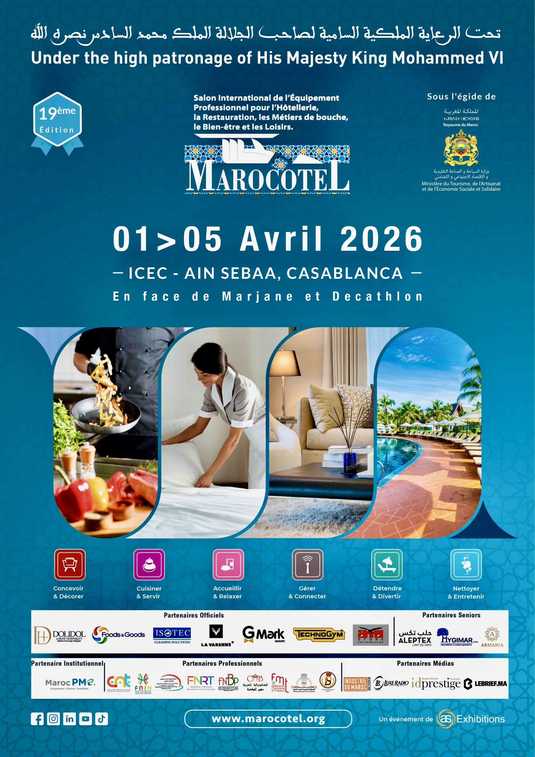 تستعد مدينة الدار البيضاء لاحتضان الدورة التاسعة عشرة من معرض Marocotel الدولي، المتخصص في تجهيزات وخدمات الفندقة والمطاعم ومهن الطهي، وذلك خلال الفترة الممتدة من 1 إلى 5 أبريل 2026 بمركز المعارض ICEC بعين السبع. وينظم هذا الحدث تحت الرعاية السامية لصاحب الجلالة الملك محمد السادس وبدعم من وزارة السياحة، حيث يعد من أبرز المواعيد المهنية بإفريقيا المخصصة لقطاع الفندقة والمطاعم (CHR). ومن المرتقب أن تعرف دورة 2026 مشاركة أكثر من 300 عارض يمثلون أزيد من 2400 علامة تجارية، موزعين على مساحة عرض تناهز 30 ألف متر مربع، تشمل مختلف تجهيزات القطاع، من المطابخ المهنية وأدوات المائدة والفرش الفندقي إلى حلول الغسيل الصناعي والتدبير الرقمي للفنادق والأثاث ومعدات الرفاهية والبنيات المائية. ويحمل المعرض هذه السنة شعار "Challenge 2030"، في إشارة إلى التحولات التي يعرفها القطاع السياحي بالمغرب في أفق الاستحقاقات الدولية الكبرى، وعلى رأسها كأس العالم 2030، إضافة إلى الاستراتيجية الوطنية الهادفة إلى تعزيز مكانة المملكة كوجهة سياحية عالمية. ويراهن المنظمون على جعل هذا الموعد منصة مهنية لعرض أحدث الابتكارات المرتبطة بتجهيز الفنادق والمطاعم، خصوصا في مجالات الرقمنة وتدبير الطاقة وتجربة الزبون. ويأتي تنظيم هذه الدورة في سياق حاجة عدد من المؤسسات الفندقية المغربية إلى تحديث تجهيزاتها، خصوصا تلك التي أنجزت خلال موجات الاستثمار السياحي في تسعينيات وبداية الألفية، والتي أصبحت تواجه تحديات مرتبطة بتقادم المعدات وارتفاع كلفة الطاقة ومتطلبات الجودة الجديدة. ويشكل المعرض أيضا فضاء للتبادل بين المهنيين والمستثمرين ومكاتب الدراسات المعمارية والمصممين، خاصة من خلال فضاء Club Archi & Design الذي يخصص لعرض مشاريع وتصاميم الفنادق المستقبلية. كما ستعرف الدورة تنظيم عدد من الفعاليات المهنية، من بينها مطعم مؤقت يحمل اسم "Resto des Chefs – Arabesque"، حيث سيقدم طهاة معروفون عروض طهي مباشرة، من بينهم بدر الشكويفي وعصام الرشاشي ومريم الطاهري وعصام آيت وكرم. ويهدف هذا الفضاء إلى تعزيز نقل الخبرات بين الطهاة المهنيين والشباب العاملين في القطاع، في ظل التحديات التي يعرفها سوق العمل الفندقي، خاصة ما يتعلق بندرة اليد العاملة المؤهلة. ومن المنتظر أن تسلط الدورة الجديدة الضوء كذلك على التحول الرقمي داخل قطاع الفندقة، من خلال حلول متقدمة تشمل أنظمة إدارة الفنادق الرقمية، والتحكم الذكي في استهلاك الطاقة، وتسجيل الوصول عبر الهاتف، وتحليل تقييمات الزبناء باستخدام الذكاء الاصطناعي. ويعكس تنظيم هذا الحدث الدينامية التي يشهدها القطاع السياحي بالمغرب، في وقت تتسارع فيه الاستثمارات والاستعدادات لتطوير العرض السياحي الوطني وفق المعايير الدولية.