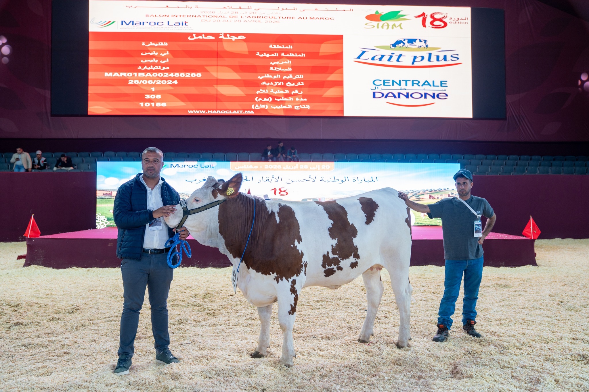 وجاء هذا التتويج، قبيل اختتام فعاليات المعرض، بفضل عجلة من ضيعة “Lait Plus” التابعة لسنطرال دانون، حيث نالت المرتبة الأولى ضمن فئة العجلات الحوامل من نفس السلالة، وفق المعايير المعتمدة في هذه المنافسة الوطنية التي تكرم أفضل ممارسات تربية الأبقار الحلوب بالمغرب.