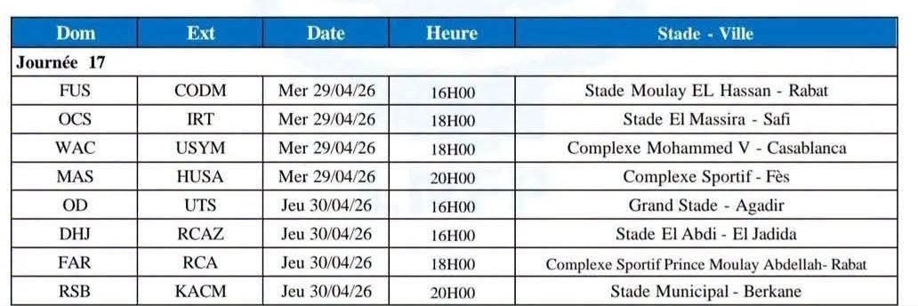 | البرنامج الكامل لمباريات الدورة 17 من البطولة الاحترافية |